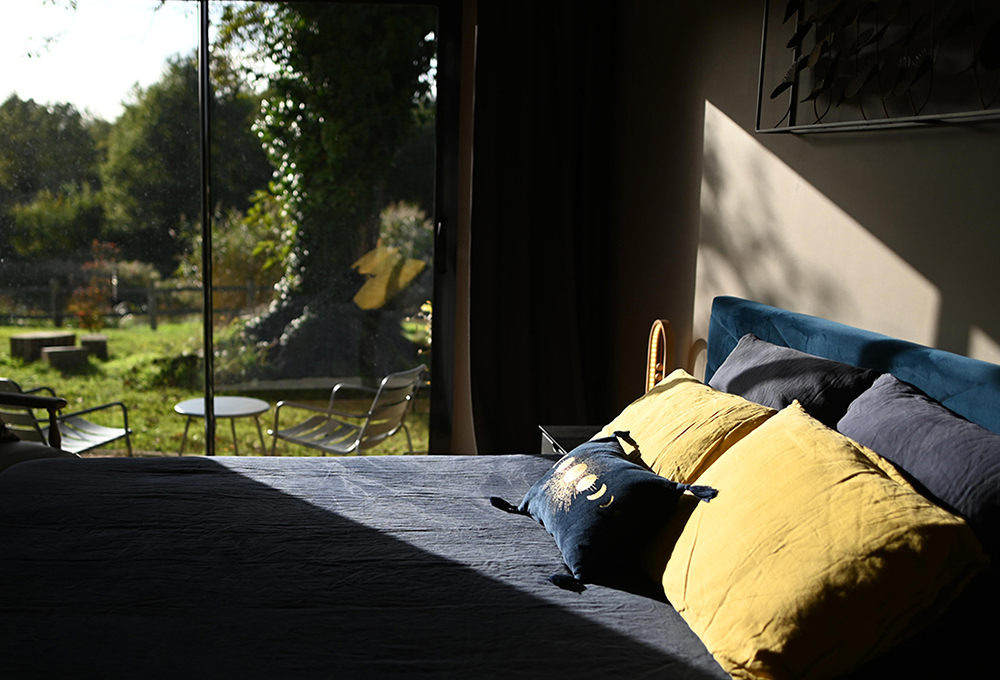 Belle de Nuit, est une suite de charme de plein pied, spacieuse et lumineuse. Véritable cocoon indépendant qui dévoile un espace privilégié où confort et simplicité se marie harmonieusement. Comprenant deux espace; le premier doté Un salon cheminé avec tomettes anciennes, d’une cuisine entièrement équipées et offrant une vue panoramique du lever au coucher de soleil. Le deuxième d’une chambre ouverte sur la nature doté avec parquet en chênes apportant  une atmosphère chaleureuse, qui dévoile un lit spacieux et confortable prologé d’une baie vitré avec vue imprenable sur un paysage sauvage invitant à l’évasion. Pour votre plus grand confort sa  salle de bain attenante est équipée d’une grande douche à l’italienne, de doubles vasques, d’un toilette indépendant et d’un dressing.